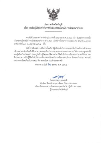Posted on 21 ตุลาคม 2025 ประกาศจังหวัดชัยภูมิ เรื่อง รายชื่อผู้มีสิทธิเข้ารับการคัดเลือกสรรเป็นพนักงานจ้างเหมาบริการ ตำแหน่ง เจ้าหน้าที่รักษาความปลอดภัย ประกาศจังหวัดชัยภูมิ เรื่อง รายชื่อผู้มีสิทธิเข้ารับการคัดเลือกสรรเป็นพนักงานจ้างเหมาบริการ ตำแหน่ง เจ้าหน้าที่รักษาความปลอดภัย Post Views: 32 Share: